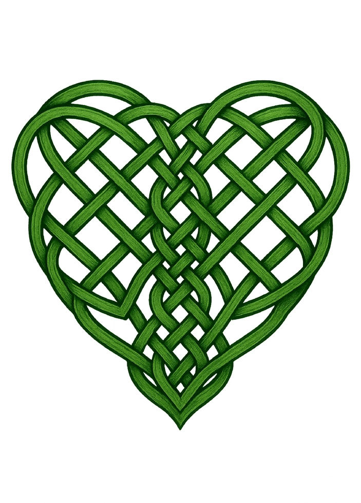 Die Tattoovorlage zeigt ein wunderschönes, keltisches Knotendesign in Herzform. Die komplexen Verflechtungen sind in einem kräftigen Grün gehalten und symbolisieren Liebe und Verbundenheit. Diese Vorlage eignet sich hervorragend für eine Brusttattoo und bringt eine besondere Bedeutung mit sich.