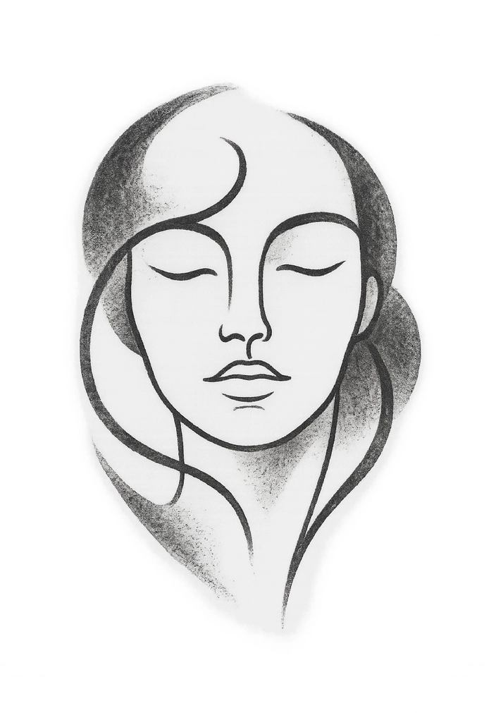 Abstrakte Gesichtsskizze mit geschlossenen Augen für ein stilvolles Tattoo.