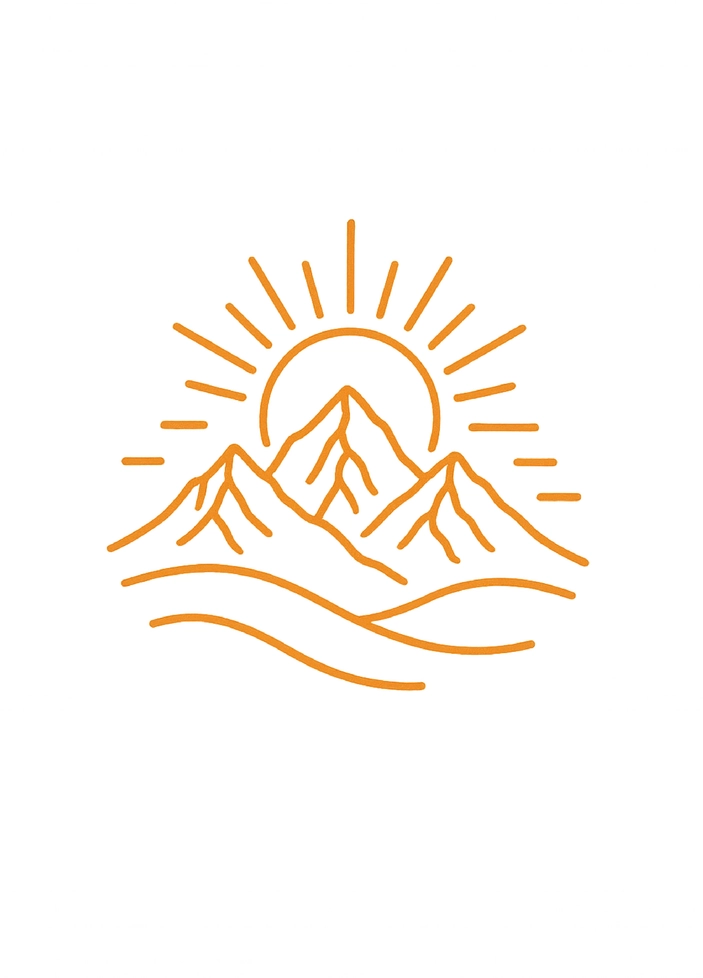 Minimalistische Darstellung einer Berglandschaft mit Sonnenaufgang für kreative Tattoo-Ideen.