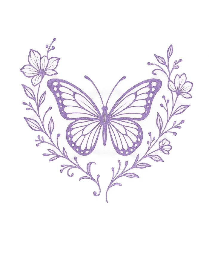 Elegante Tattoovorlage mit Schmetterling und floralen Elementen in Lila.