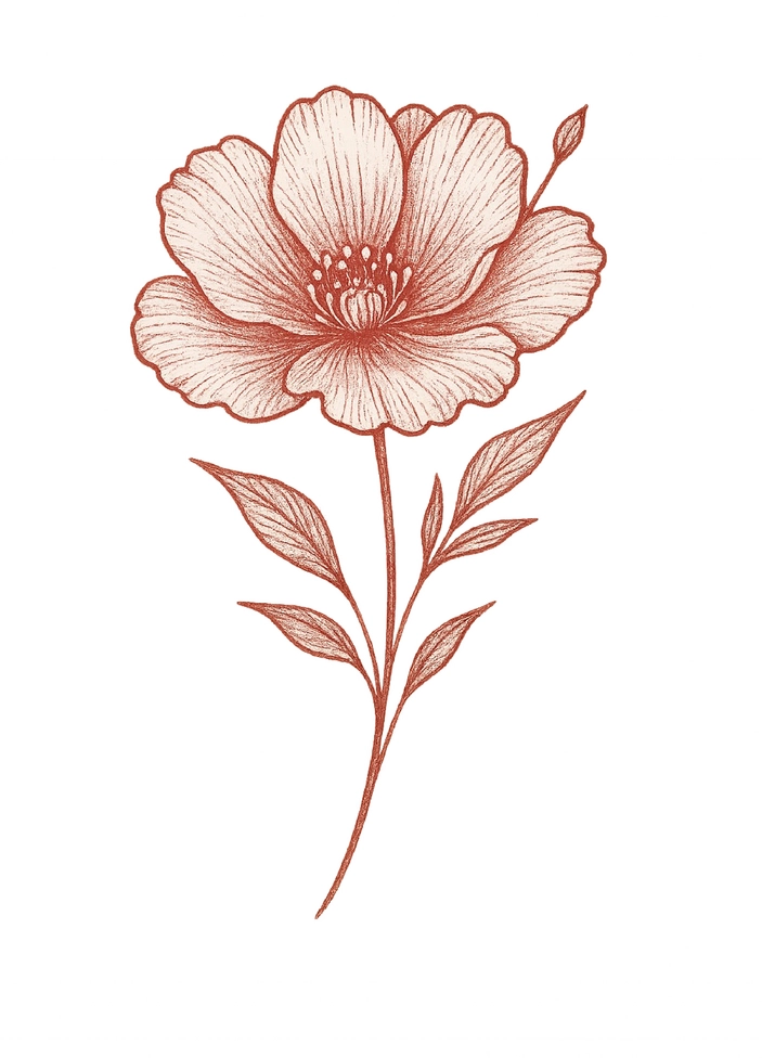Diese Tattoovorlage zeigt eine filigrane Blume mit zarten Blütenblättern, die sanft an einem schlanken Stängel befestigt ist. Die Detailtreue und die ästhetische Gestaltung machen sie zu einem beliebten Motiv für Tattoos, besonders im Oberarmbereich.