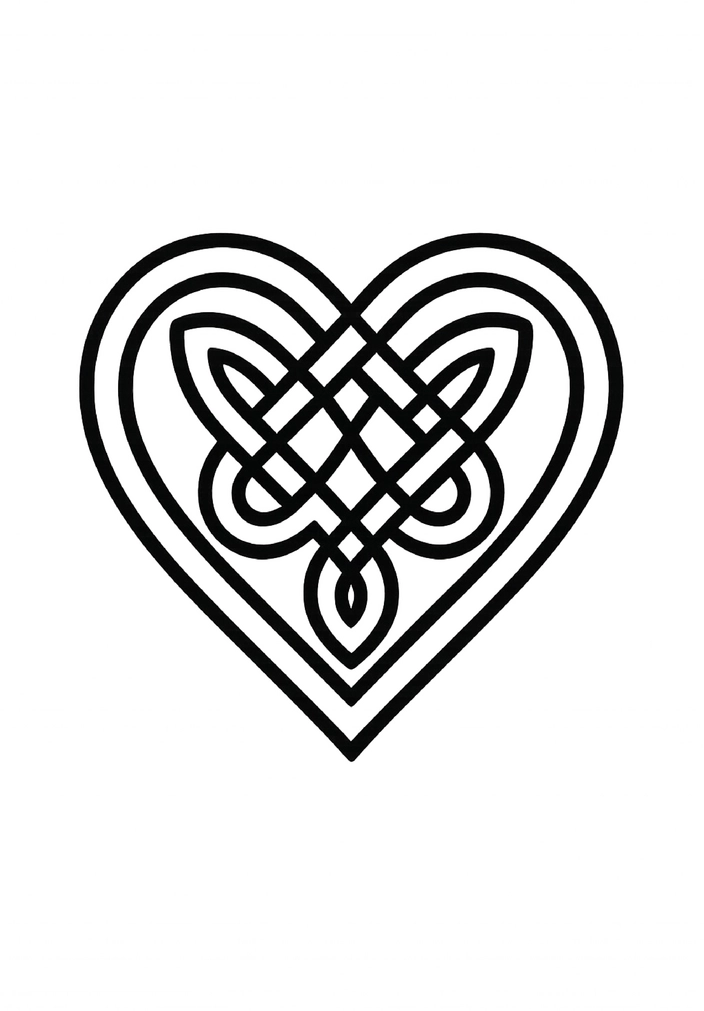 Die Tattoovorlage zeigt ein filigranes Herz, das mit einem keltischen Knotenmuster verziert ist. Diese Kombination symbolisiert Liebe und Verbundenheit und eignet sich hervorragend für ein stilvolles Tattoo auf dem Oberarm.