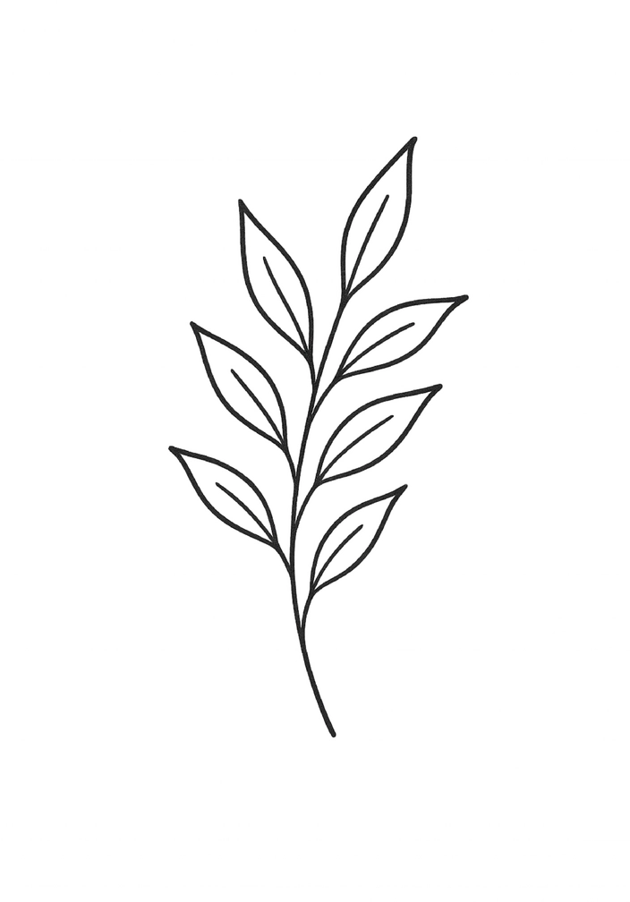 Die Tattoovorlage zeigt eine minimalistische Darstellung von Blättern, die elegant und fein gezeichnet sind. Die geschwungenen Linien und die Anordnung der Blätter verleihen dem Design eine harmonische Ausstrahlung, ideal für ein dezentes Tattoo.