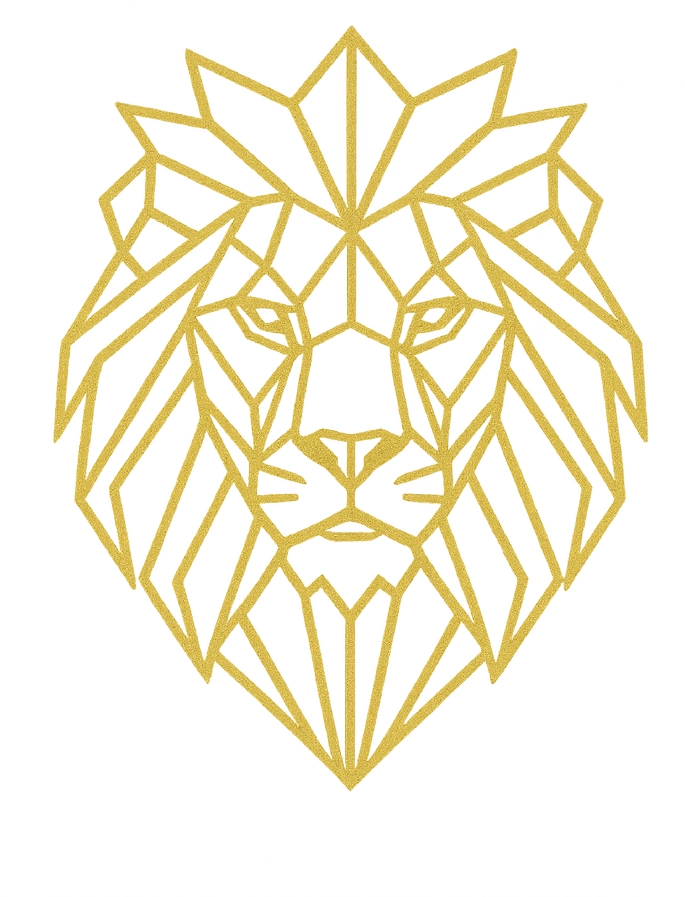 Geometrische Löwenkopf-Tattoovorlage für Stärke und Mut.