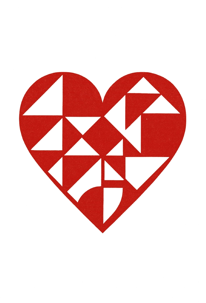 Stilisiertes Herz aus geometrischen Formen in Rot für dein persönliches Tattoo.