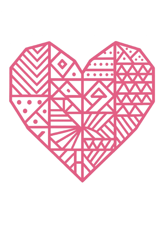 Diese Vorlage zeigt ein geometrisches Herz mit kreativen Mustern und Designs.
