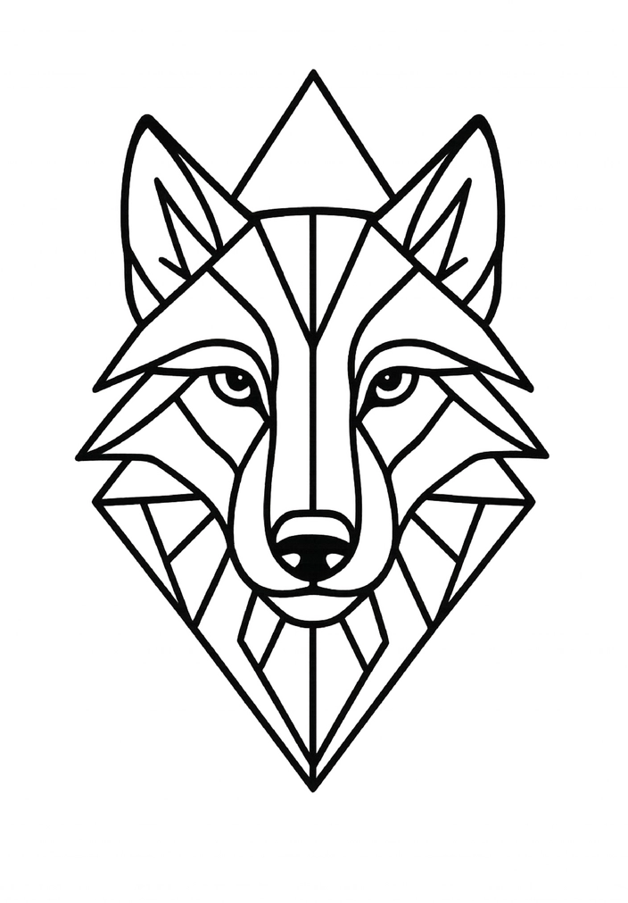 Tattoovorlage geometrisches Wolfsmotiv mit klaren Linien