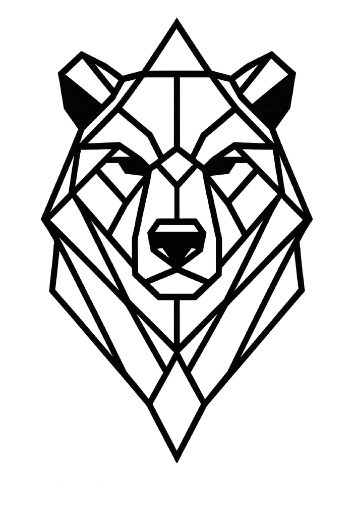 Diese Tattoovorlage zeigt ein stilisiertes, geometrisches Wolfsmotiv, das aus klaren Linien und modernen Formen besteht. Der Wolf symbolisiert Stärke und Unabhängigkeit, was ihn zu einem beliebten Motiv für Tattoos macht.