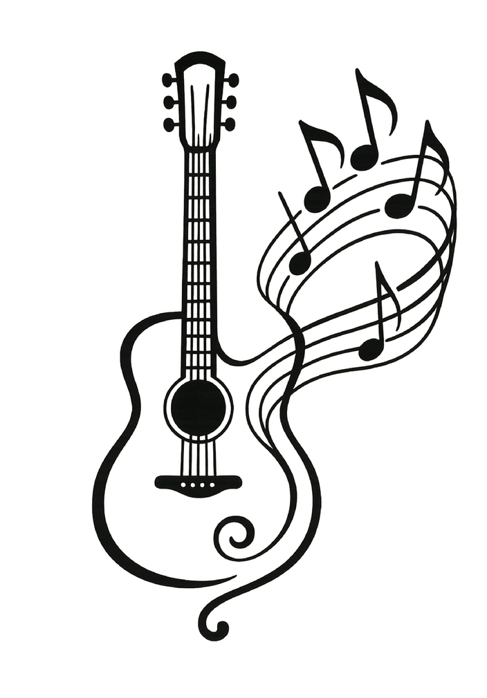 Stilisierte Gitarre mit Noten als kreative Tattoovorlage für Musikliebhaber.