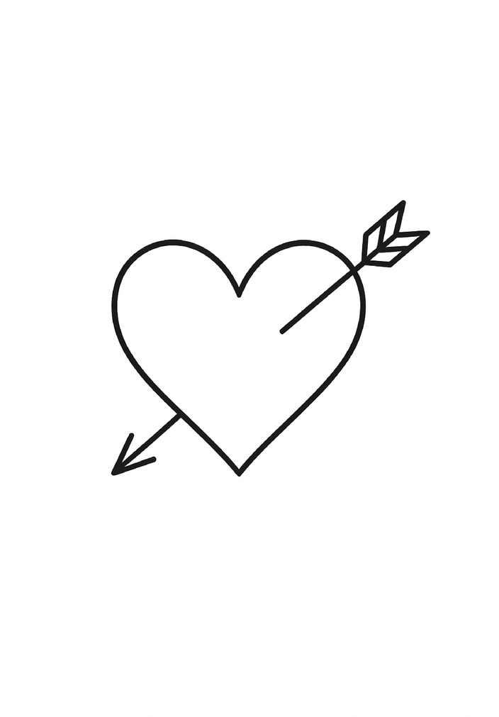 Minimalistische Tattoovorlage eines Herzens mit Pfeil, symbolisiert Liebe und Leidenschaft.