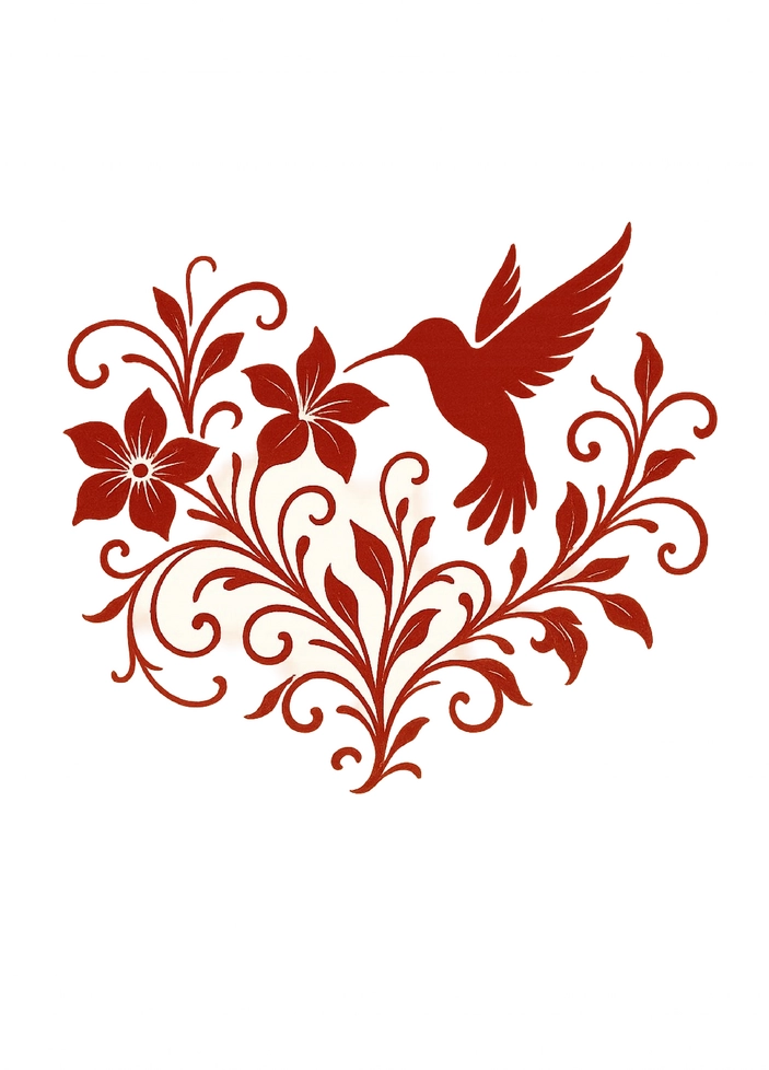 Eine kreative Tattoovorlage mit einem Kolibri und floralen Designs für Frauen.