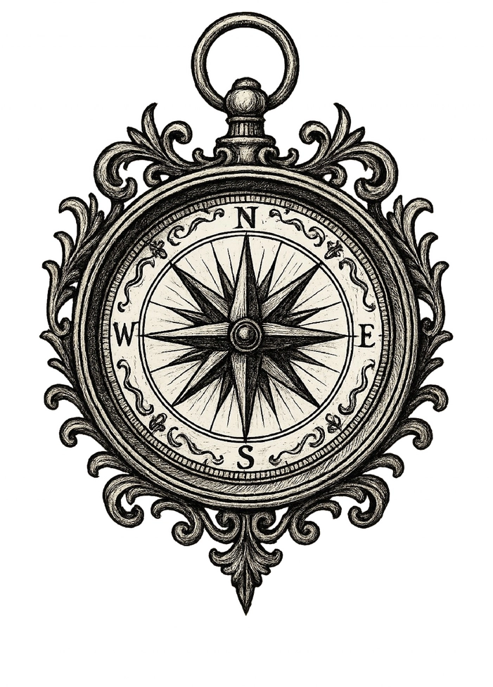 Ein kunstvoller Kompass symbolisiert Orientierung und Abenteuerlust als Tattoo-Vorlage.