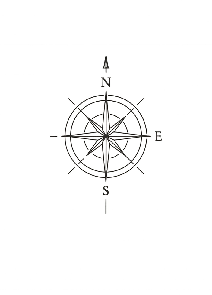 Die Vorlage zeigt einen eleganten Kompass mit feinen Linien und ist ideal für Tattoos.