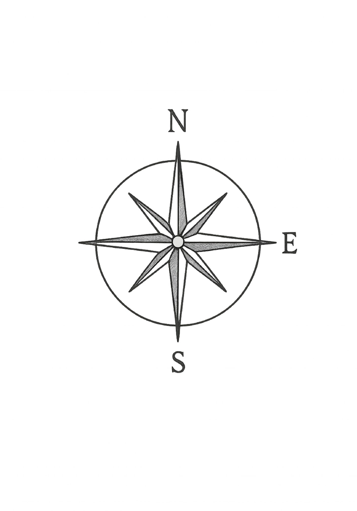 Stilisierter Kompass als Tattoo-Vorlage für Abenteurer und Reisende.