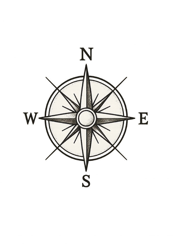 Diese Tattoovorlage zeigt einen stilisierten Kompass, der mit klaren und sanften Linien gestaltet ist. Die vier Himmelsrichtungen sind deutlich dargestellt, was dem Tattoo eine symbolische Bedeutung verleiht. Ideal für alle, die eine Orientierung im Leben suchen.