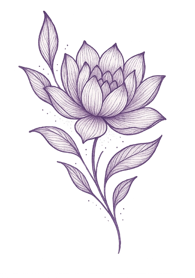 Diese Tattoovorlage zeigt eine elegante Lotusblume mit zarten Blättern.
