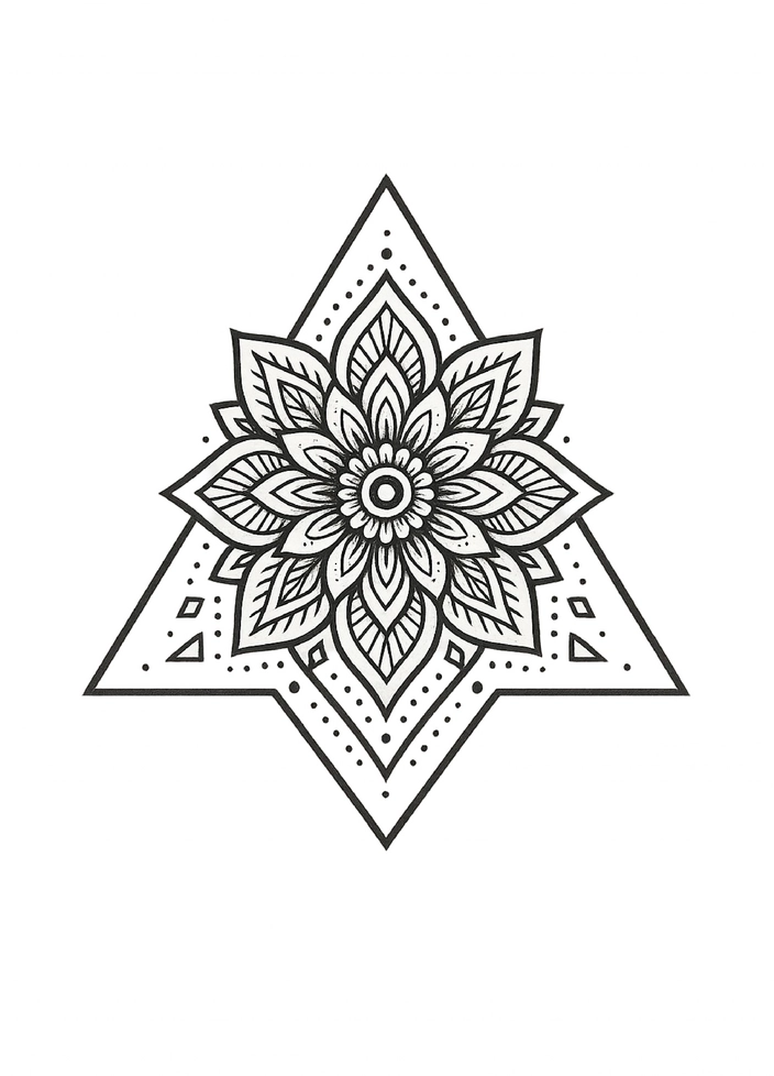 Elegantes Mandala-Design in geometrischen Formen für kreative Tattoos.