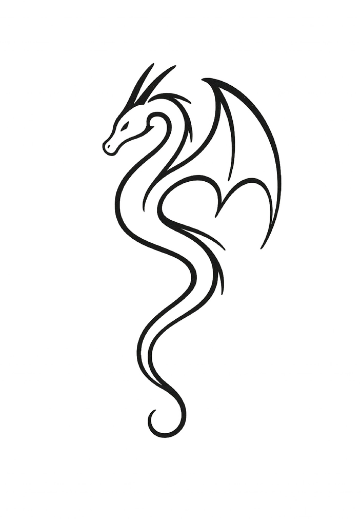 Minimalistischer Drache in eleganten, fließenden Linien als Tattoo-Vorlage.