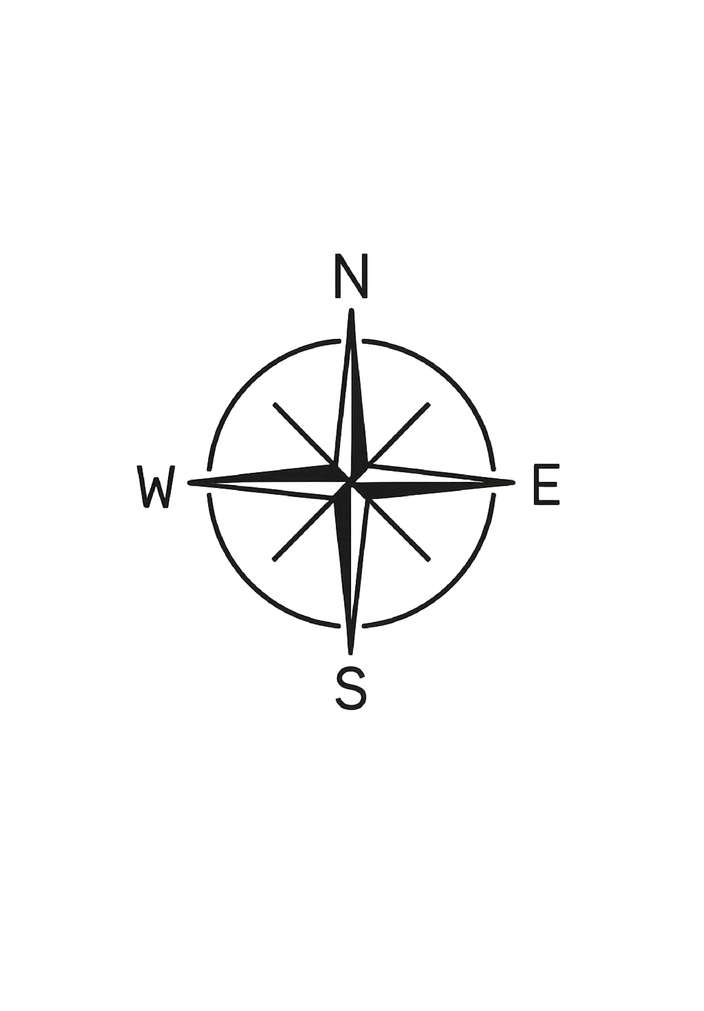 Das Tattoo zeigt einen Kompass, der durch seine klare Linienführung und das minimalistisches Design besticht. Die Himmelsrichtungen sind deutlich markiert, was dem Motiv eine funktionale Symbolik verleiht. Ideal für alle, die eine Reise oder den Weg im Leben symbolisieren möchten.