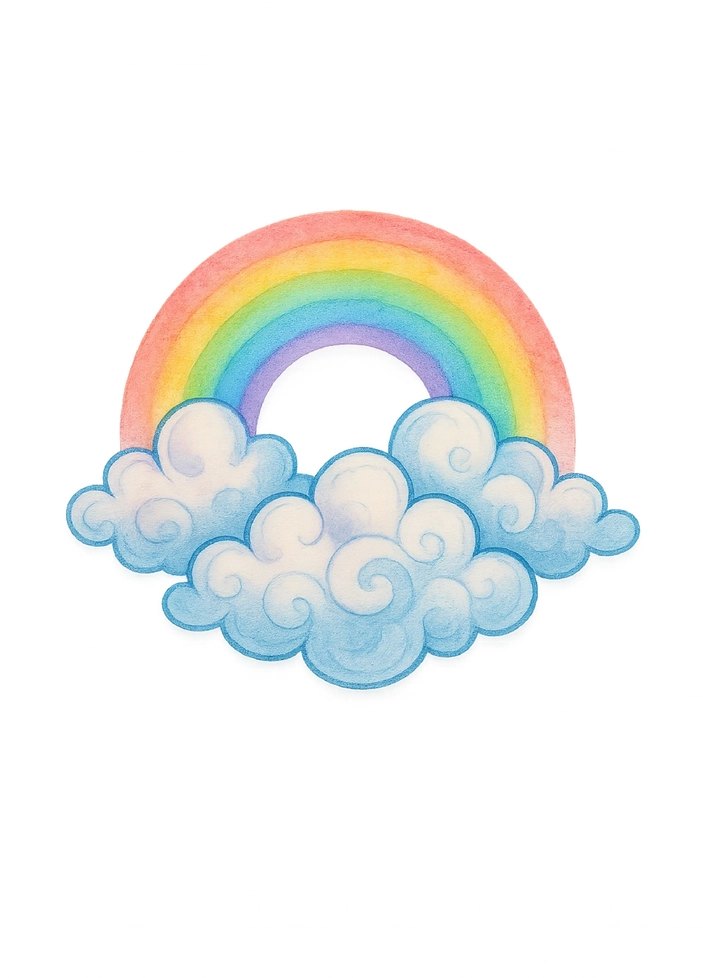 Bunte Regenbogen-Tattoovorlage mit sanften Wolken für fröhliche Designs.
