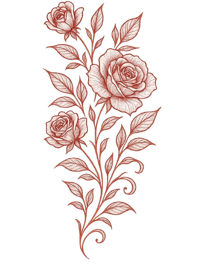 Elegante Tattoovorlage mit Rosen und Blättern für Frauen.