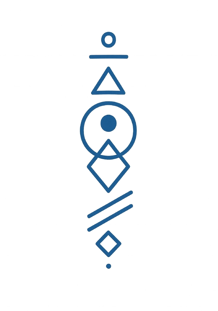 Diese Tattoovorlage zeigt ein modernes Design aus verschiedenen geometrischen Formen, die harmonisch angeordnet sind. Die Kombination von Kreisen, Dreiecken und Linien schafft ein ansprechendes, minimalistisches Gesamtbild, das perfekt für ein Finger-Tattoo geeignet ist.