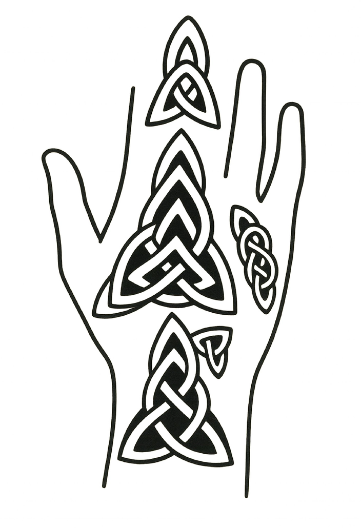 Diese Tattoovorlage zeigt eine faszinierende Anordnung von keltischen Knoten, die sich elegant über die Hand erstrecken. Die symmetrischen Muster sind nicht nur ästhetisch ansprechend, sondern tragen auch eine tiefere symbolische Bedeutung, die in der keltischen Kultur verwurzelt ist. Diese Vorlage eignet sich hervorragend für alle, die nach einem einzigartigen Tattoo suchen.