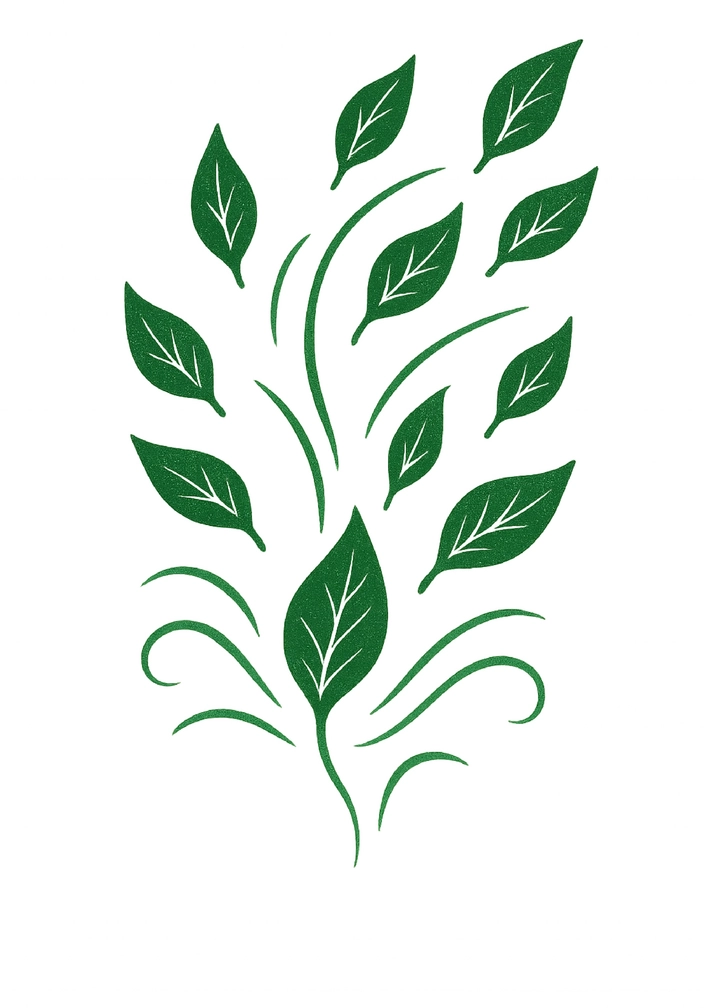 Diese Tattoovorlage zeigt stilisierte grüne Blätter, die eine harmonische Atmosphäre schaffen.