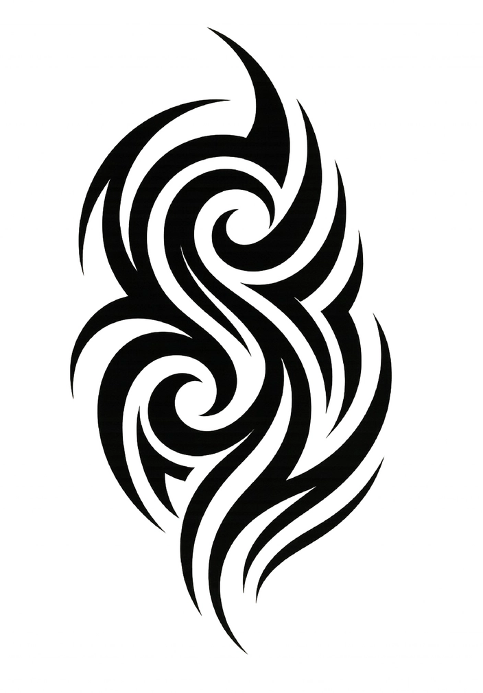 Diese Tattoovorlage zeigt ein faszinierendes tribales Muster mit geschwungenen Linien, das dynamische und fließende Formen kombiniert. Die dunkle, schwarze Farbgebung verstärkt die Ausdruckskraft des Designs und macht es zu einem idealen Kandidaten für einen Oberarmtattoo. Mit seiner eleganten Form eignet sich dieses Tattoo besonders gut für Männer, die ein kraftvolles und ästhetisches Symbol suchen.
