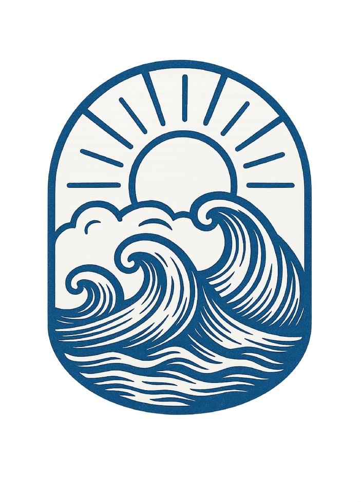 Diese Tattoovorlage zeigt dynamische Wellen unter einem Sonnenuntergang.