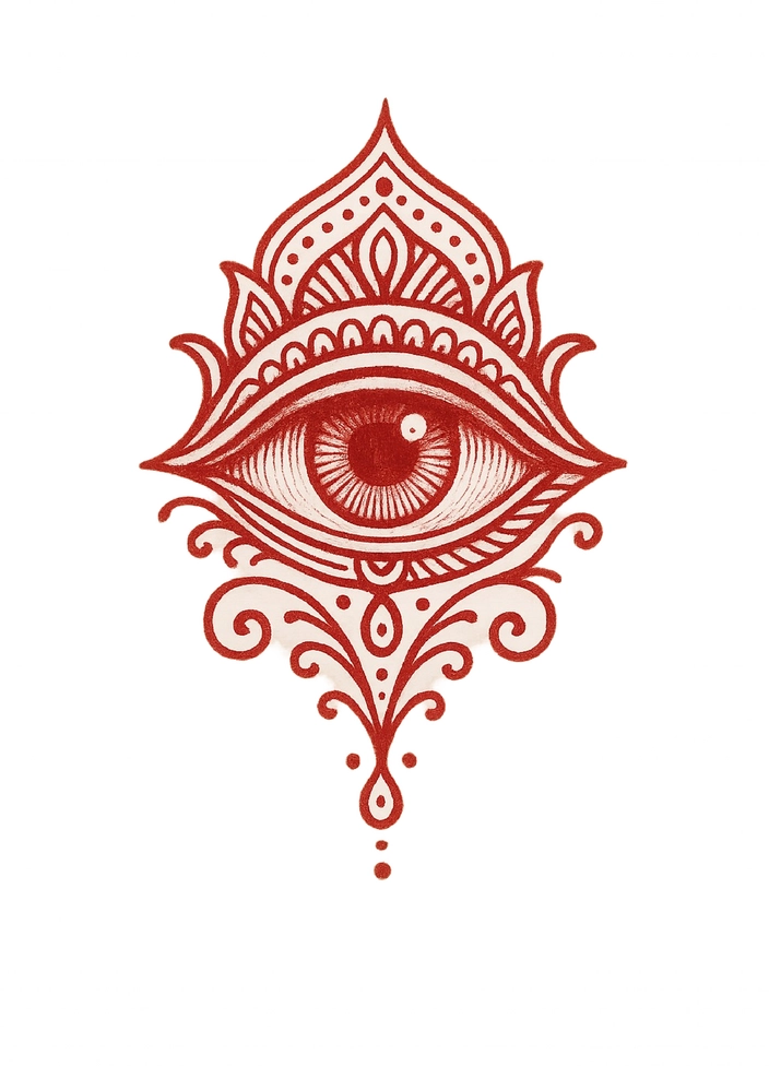 Kunstvolle Tattoovorlage eines Auges mit mystischem, filigranen Muster.