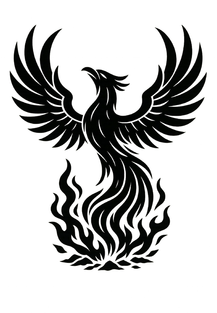 Majestätischer Phoenix, der aus den Flammen emporsteigt, symbolisiert Stärke und Wiedergeburt.