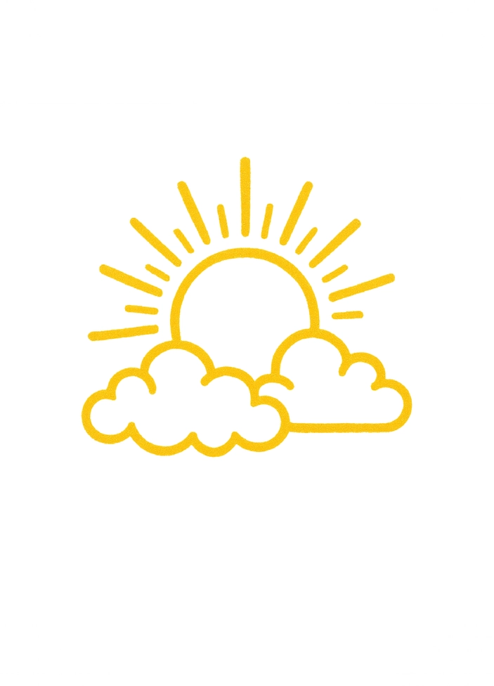 Stilisierte Sonne hinter Wolken, perfekt für ein fröhliches Finger-Tattoo.
