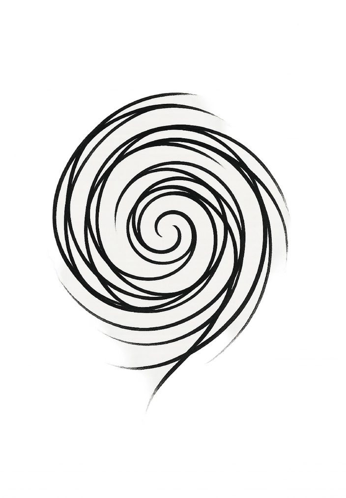 Diese Tattoovorlage zeigt eine faszinierende spiralförmige Komposition aus schwarzen Linien, die in einem harmonischen Muster angeordnet sind. Die geschwungenen Linien erzeugen eine dynamische Bewegung und verleihen der Vorlage einen modernen Touch. Ideal für Tattoos, die sowohl ästhetisch ansprechend als auch einzigartig sind.