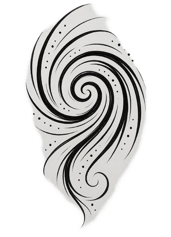 Diese Tattoovorlage zeigt ein dynamisches spiralförmiges Design mit geschwungenen Linien und Punkten, das einen modernen Tribal-Stil verkörpert. Die elegante Form eignet sich hervorragend für den Unterarm und verleiht dem Träger eine individuelle Note.