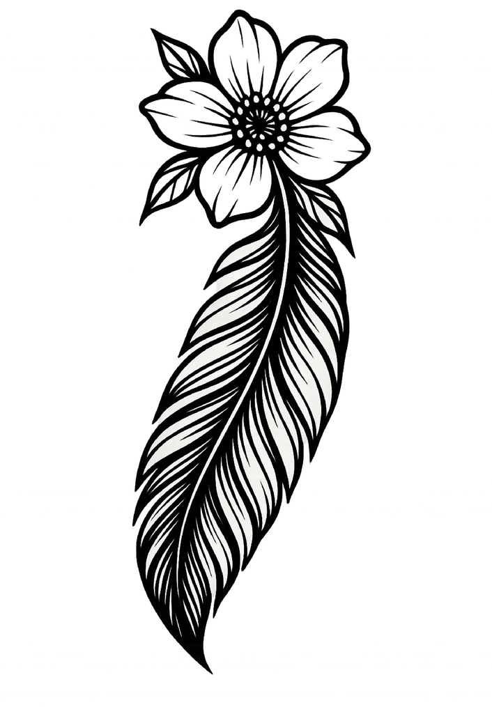 Stilisierte Blume und Feder vereinen sich in dieser eleganten Tattoovorlage.