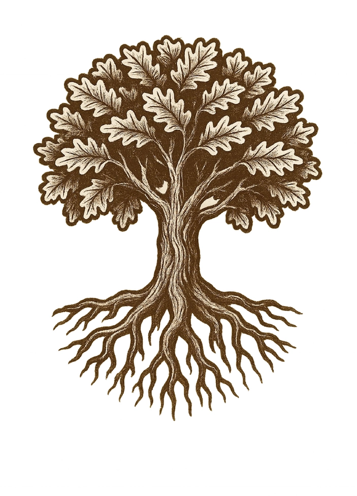 Tattoovorlage stilisierte Eiche mit starken Wurzeln