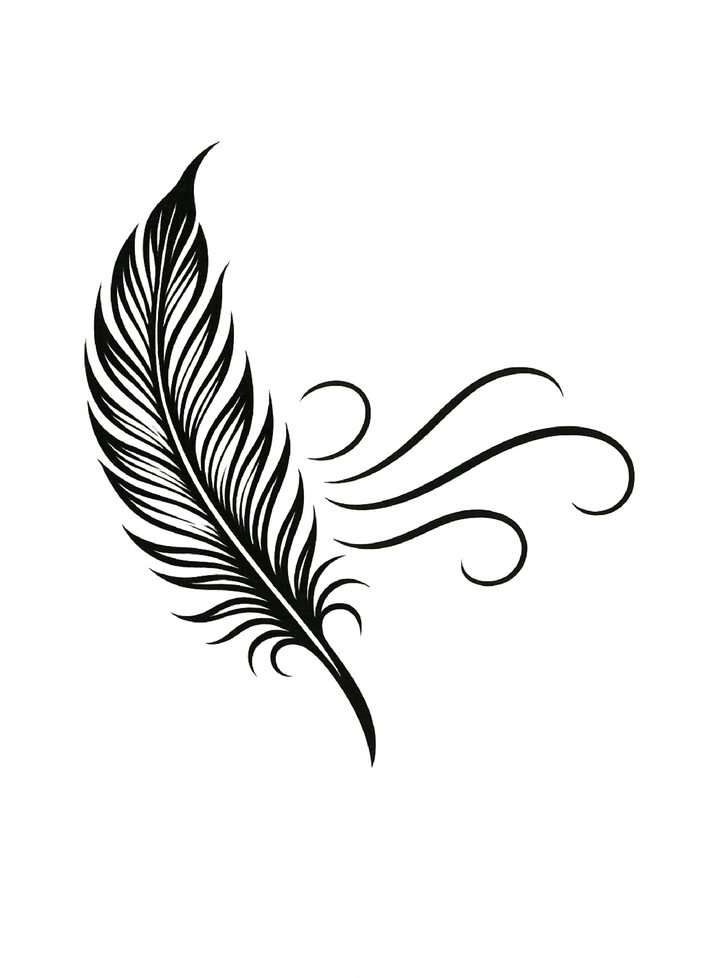 Diese Tattoovorlage zeigt eine stilisierte Feder, die elegant im Wind weht.