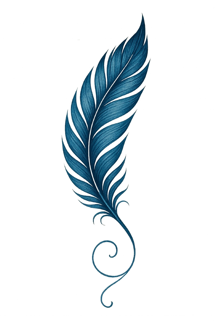 Diese Tattoovorlage zeigt eine stilisierte Feder, die elegant und detailreich gestaltet ist. Die sanften Linien und die tiefblaue Farbgebung verleihen dem Design eine besondere Ästhetik, die sowohl für Frauen als auch für kreative Seelen ansprechend ist.