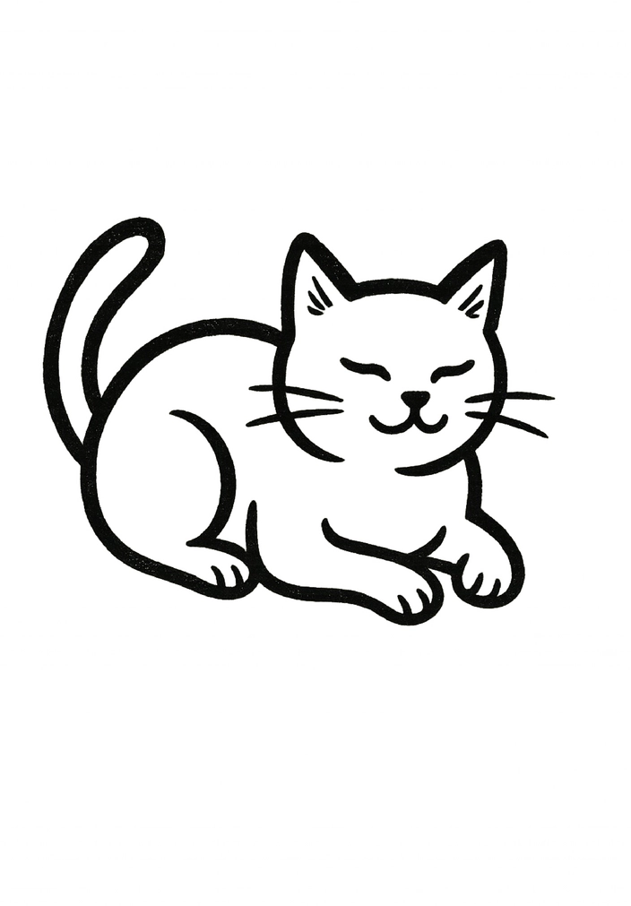 Die Tattoovorlage zeigt eine entzückende, stilisierte Katze, die entspannt auf dem Boden liegt. Die klare Linienführung und die einfache Form machen dieses Tattoo zu einem idealen Motiv für Tierliebhaber.