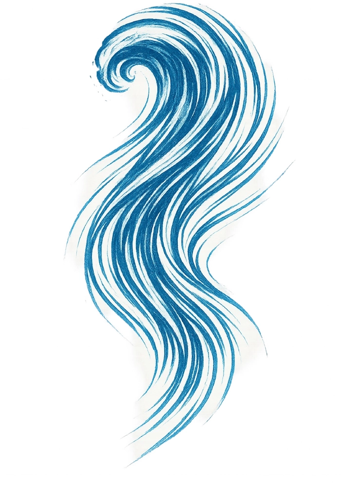 Die Tattoovorlage zeigt eine dynamische, stilisierte Welle in einem tiefen Blau. Die geschwungenen Linien vermitteln ein Gefühl von Bewegung und Energie, ideal für ein Tattoo, das die Verbindung zur Natur symbolisiert.