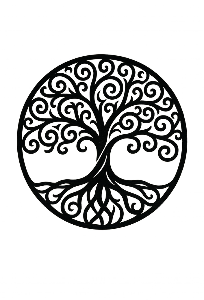 Ein stilisierter Baum des Lebens mit harmonischen Mustern und tiefen Wurzeln.