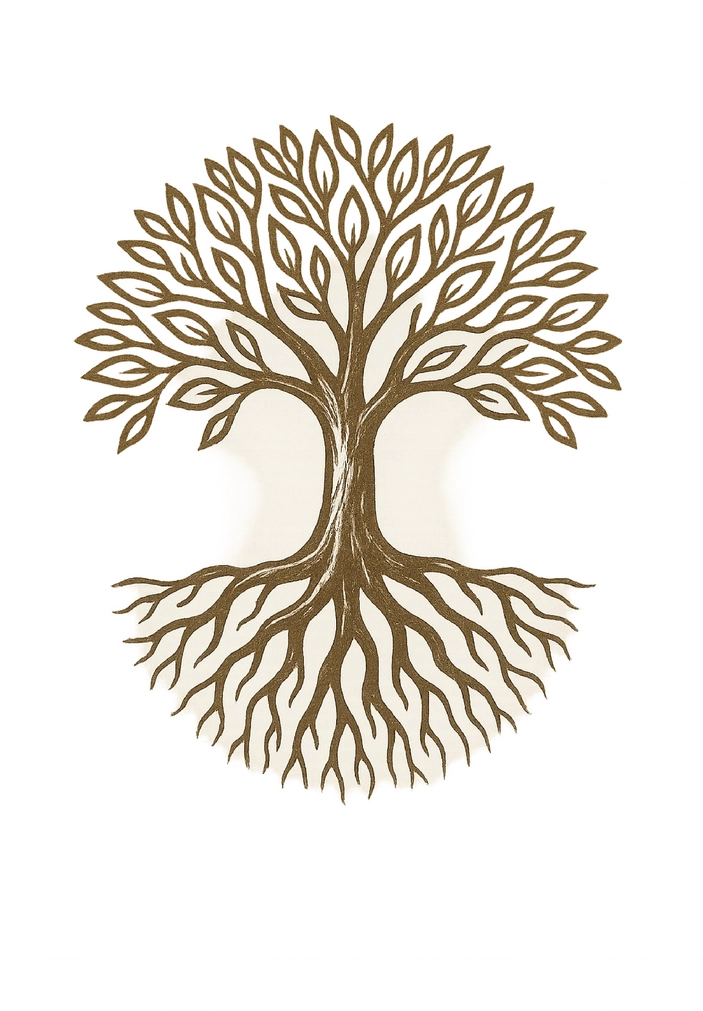 Stilisierter Baum mit tiefen Wurzeln als Tattoo-Design für Frauen.