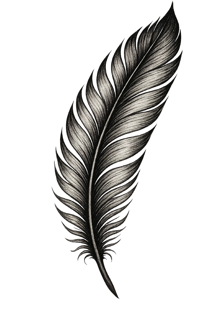 Diese Tattoovorlage zeigt eine kunstvoll gestaltete Feder, die durch ihre feinen Details und Schattierungen besticht. Die Feder symbolisiert Freiheit und Leichtigkeit und eignet sich hervorragend für ein Oberarm-Tattoo.