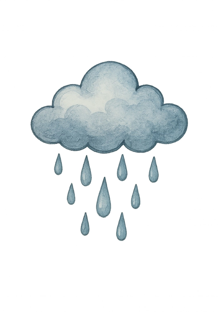 Stilisierte Wolke mit Regentropfen in sanften Blau-Grautönen für ein harmonisches Tattoo.